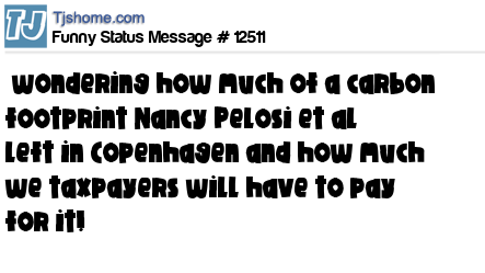 X is  wondering how much of a carbon footprint Nancy Pelosi et al left in Copenhagen and how much we taxpayers will have to pay for it!