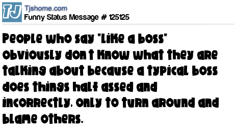 X says People who say "like a boss" obviously don’t know what they are talking about because a typical boss does things half assed and incorrectly, only to turn around and blame others.