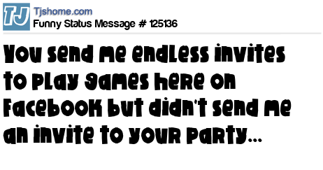 - # 125168 Facebook: A place where someone will send you endless invites to play games, but won't invite you to their party.