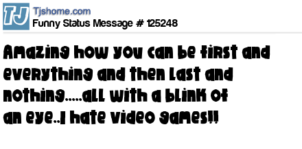 X Amazing how you can be first and everything and then last and nothing.....all with a blink of an eye..I hate video games!!