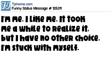 X I'm me. I like me. It took me a while to realize it, but I have no other choice. I'm stuck with myself.