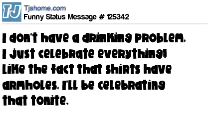 X says I don't have a drinking problem, I just celebrate everything! Like the fact that shirts have armholes, I'll be celebrating that tonite.