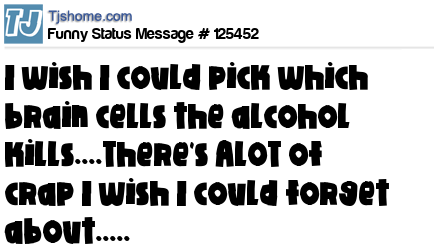 X says i wish I could pick which brain cells the alcohol kills....There's ALOT of crap I wish I could forget about.....