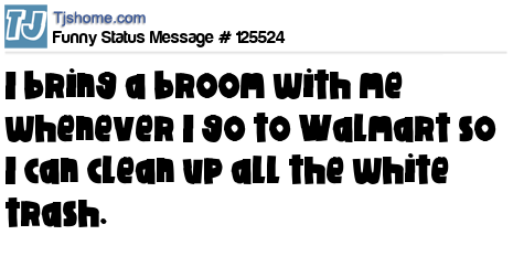 X says I bring a broom with me whenever I go to Walmart so I can clean up all the white trash.