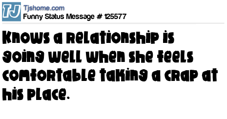- # 184158 The only way to know a relationship is going well, when she feels comfortable taking a dump at your place