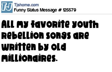 X says All my favorite youth rebellion songs are written by old millionaires.