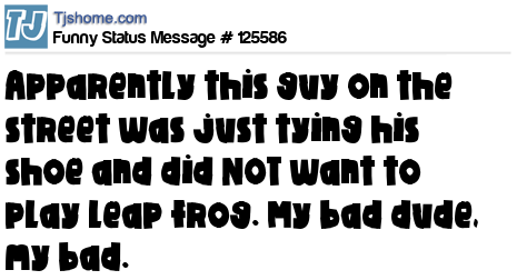 X is Apparently this guy on the street was just tying his shoe and did NOT want to play leap frog. My bad dude, my bad.