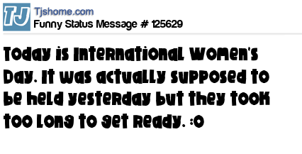 X is Today is International Women's Day. It was actually supposed to be held yesterday but they took too long to get ready. :o\