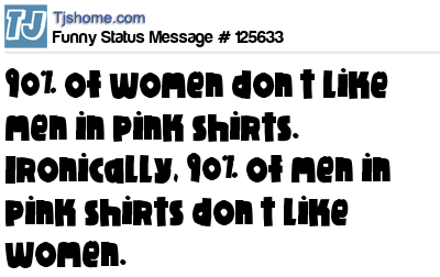 - # 184234 90% of women don’t like men in pink shirts. Ironically, 90% of men in pink shirts don’t like women