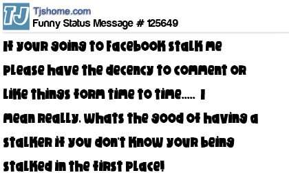 X says If your going to Facebook stalk me please have the decency to comment or like things form time to time..... I mean really, whats the good of having a stalker if you don't know your being stalked in the first place!