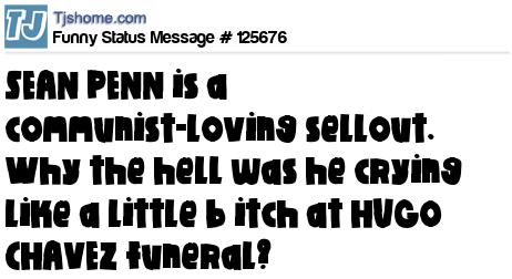 X says SEAN PENN is a communist-loving sellout. Why the hell was he crying like a little b itch at HUGO CHAVEZ funeral?