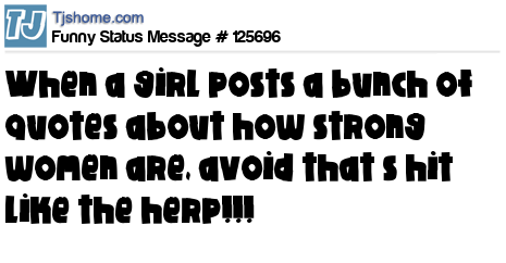 X says when a girl posts a bunch of quotes about how strong women are, avoid that s hit like the herp!!!