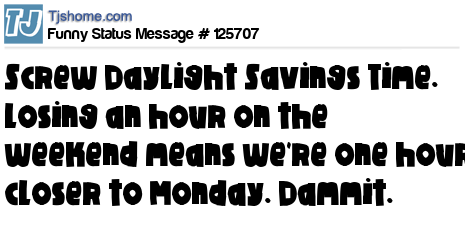 X Screw Daylight Savings Time. Losing an hour on the weekend means we're one hour closer to Monday. Dammit.