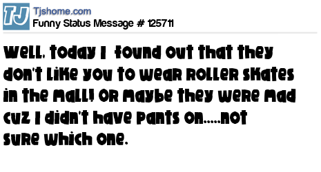 X Well, today I found out that they don't like you to wear roller skates in the mall! Or maybe they were mad cuz I didn't have pants on.....not sure which one.