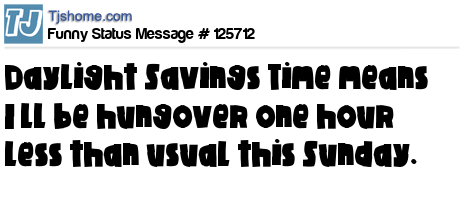 - # 125707 Screw Daylight Savings Time. Losing an hour on the weekend means we're one hour closer to Monday. Dammit.