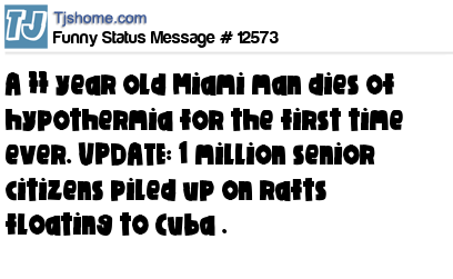 X says a 77 year old Miami man dies of hypothermia for the first time ever. UPDATE: 1 million senior citizens piled up on rafts floating to Cuba .