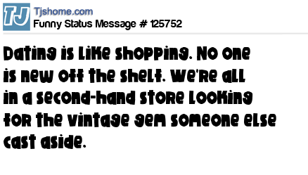 X says Dating is like shopping. No one is new off the shelf. We're all in a second-hand store looking for the vintage gem someone else cast aside.
