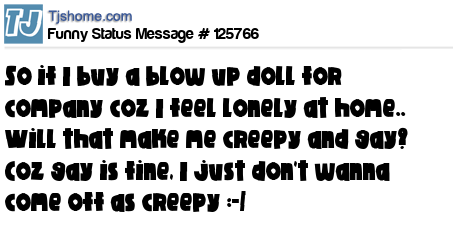 X is So if I buy a blow up doll for company coz I feel lonely at home.. Will that make me creepy and gay? Coz gay is fine, I just don't wanna come off as creepy :-/