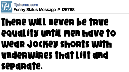 - # 19533 there will never be true equality until men have to wear jockey shorts with under-wires that lift and separate.