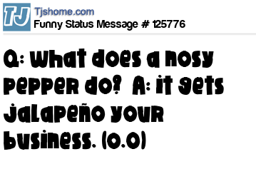 - # 135794 what does a nosey pepper do? Gets Jalapeno business.