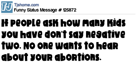 X says If people ask how many kids you have don't say negative two. No one wants to hear about your abortions.