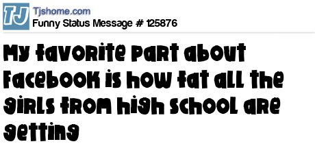 X says My favorite part about Facebook is how fat all the girls from high school are getting