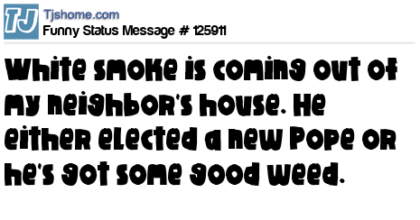 X says White smoke is coming out of my neighbor's house. He either elected a new Pope or he's got some good weed.