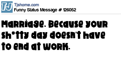 - # 131695 Marriage, because your suffering doesnt have to end at work.