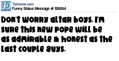 X is Don't worry altar boys, I'm sure this new pope will be as admirable & honest as the last couple guys.