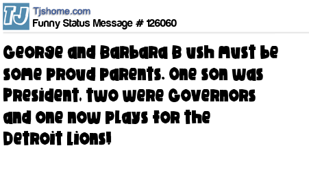 X says George and Barbara B ush must be some proud parents. One son was President, two were Governors and one now plays for the Detroit Lions!