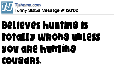 - # 61873 hunting is the only sport where you get to eat your opponent.