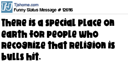 X says There is a special place on earth for people who recognize that religion is bulls hit.