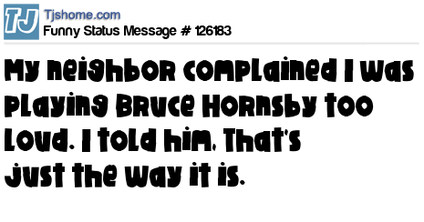 X My neighbor complained I was playing Bruce Hornsby too loud. I told him, That's just the way it is.