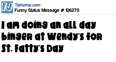 X I am doing an all day binger at Wendy's for St. Fatty's Day