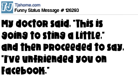 X says My doctor said, "This is going to sting a little," and then proceeded to say, "I've unfriended you on Facebook."
