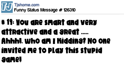 X # 19: You are smart and very attractive and a great ..... Ahhh!, who am I kidding? No one invited me to play this stupid game!