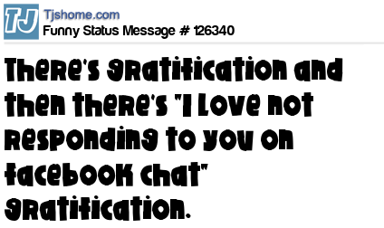 X There's gratification and then there's "I love not responding to you on facebook chat" gratification.
