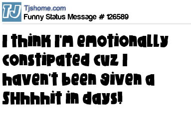 - # 110386 I think I'm emotionally constipated, cause I haven't given a sh!t in days.