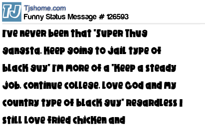 X says I've never been that "Super Thug gangsta, keep going to jail type of black guy" I'm more of a "keep a steady job, continue college, love God and my country type of black guy" regardless I still love fried chicken and watermelon.. keep it real my friends