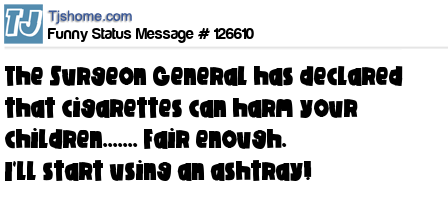 X The Surgeon General has declared that cigarettes can harm your children....... Fair enough. I'll start using an ashtray!