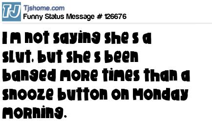 X I’m not saying she’s a slut, but she’s been banged more times than a snooze button on Monday morning.