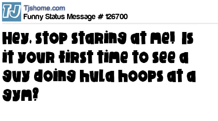 X Hey, stop staring at me! Is it your first time to see a guy doing hula hoops at a gym?