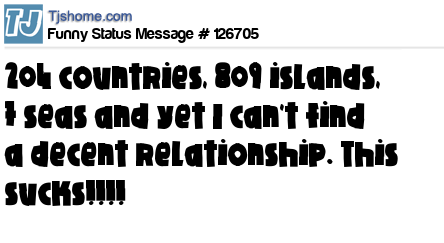 - # 126708 204 countries, 809 islands, 7 seas and yet you can't find a decent relationship. Must be something wrong with you.