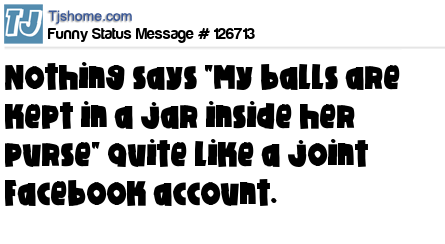 - # 164017 Nothing says, "My Balls are kept in a jar inside her purse", quite like a Joint Facebook Account.