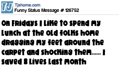 X On Fridays I like to spend my lunch at the old folks home dragging my feet around the carpet and shocking them...... I saved 8 lives last month