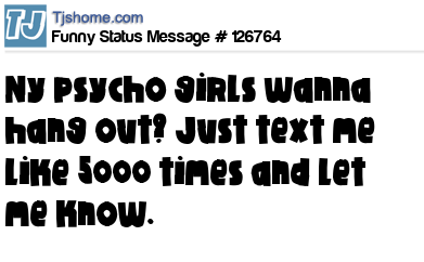 X is ny psycho girls wanna hang out? Just text me like 5000 times and let me know.