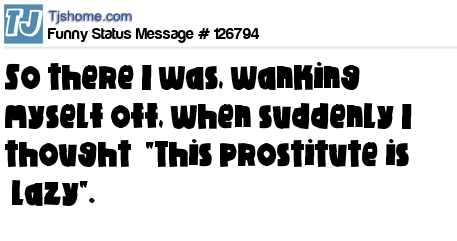 X says So there I was, wanking myself off, when suddenly I thought "This prostitute is lazy".