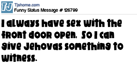 X says I always have sex with the front door open, So I can give Jehovas something to witness.
