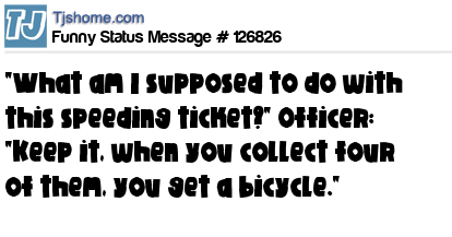 X "What am I supposed to do with this speeding ticket?" Officer: "Keep it, when you collect four of them, you get a bicycle."