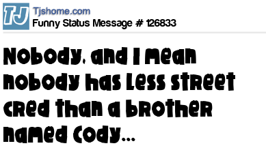 X says nobody, and I mean nobody has less street cred than a brother named Cody...